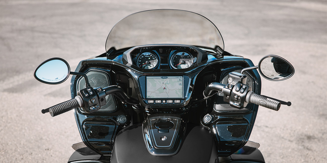 | Ride Command® | 7-tums skärm fabriksinstallerad med GPS-navigering, Apple CarPlay®, Bluetooth®-anslutning, konfigurerbara mätare, körstatistik och mer |