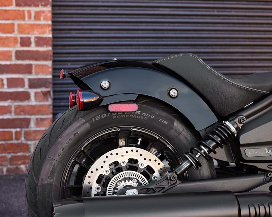 | Infotainment | STANDARD TRIM - LIMITED TRIM : E/T; LIMITED +TECH TRIM : 4" pekskärm med Ride Command. 2024-års Indian Motorcycles inkluderar en ett års provversion av Ride Command+ (varefter avgifter tillkommer) som inkluderar funktioner som fordonshälsa, kontosynkronisering, intuitiv destinationssökning. Skärmen har realtidsklocka, omgivande lufttemperatur, riktning, ljudinformationsdisplay, karta / navigering, Bluetooth-status för telefon och headset, fordonsstatus (volt, körtimmar, oljebyte); aktuella kördata (sträcka, körtid, stopptid, altitud, höjdskillnad, trippmätare, val av körläge, skärmens ljusstryrka samt fordonets felkodavläsning. |